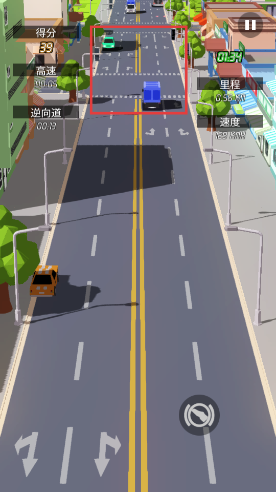 3、逆行挑战模式:开启双向车道的逆行驾驶,这种高风险的操作会带来高额的分数加成,从而激发驾驶者追求极限驾驶的欲望。