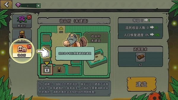 1、若想建造建筑,只需点击左边的建造按钮。