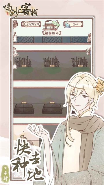 鸣沙客栈是一款趣味性十足的客栈经营类游戏。其人物立绘精美,画风偏向古风,操作简单,极易上手。在游戏里,玩家将扮演一位神秘客栈的老板,依照任务提示,逐步发展自己的客栈。玩家在此既能招待顾客,又能种植作物,在日常活动中,或许还会发现一些有趣的故事。随着招待客人次数增多,玩家还能知晓更多爱恨情仇,若化解客人的执念,还会获得更多奖励。
