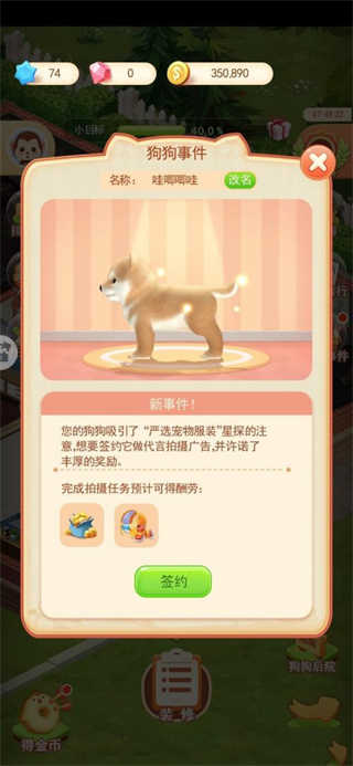 5、此外,值得一提的是狗狗的培育与养成玩法。玩家能够领养一只狗狗,进而培育出众多狗狗。