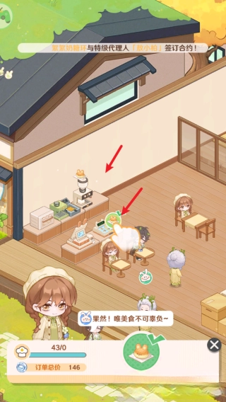 2.随后我们选择对应的设施进行制作,制作好之后点击客人即可送餐。