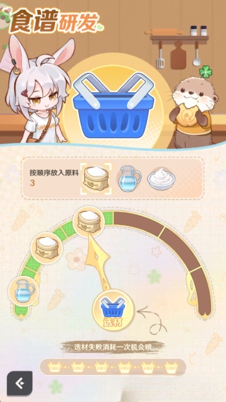 3.添加设施之后即可开始研发,按照顺序选择对应的食材。