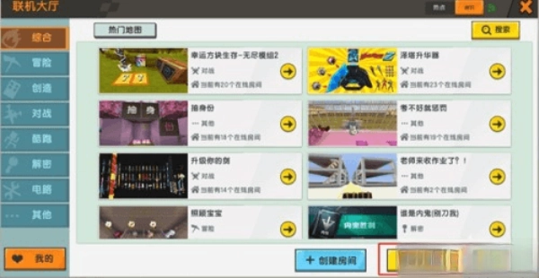 当队员到齐后,咱们就要开始选地图啦!在组队页面点击右上方“选择地图”,会出现“推荐地图”和“我的游戏库”,在“推荐地图”中可以找到适合组队游戏的地图,而在“我的游戏库”就是冒险家们自己创建或者的地图,当然啦还可以和朋友们直接创造一张新地图冒险,再也不怕不知道玩什么地图好啦!