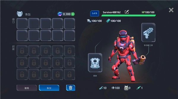 4、可以将拾取到的装备先武装好自身再出发,在背包里可以查看各种装备和物品