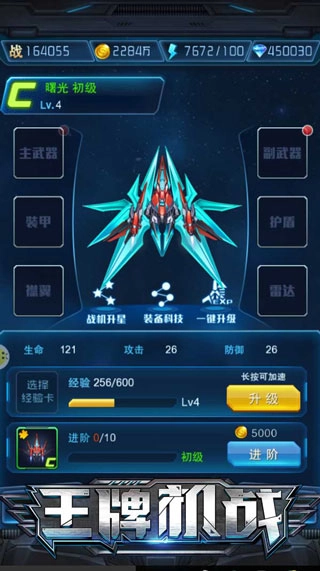 每个可装备位置的部件,都可进行升级和升阶,紫色品质装备更可升星!不断突破部件的极限,组装你的极品战机!