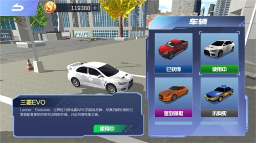 4、到这个时候,你手上已经拥有3辆车了。按照前面的三个步骤来操作,通常情况下只需要一小时。跑上几单,凑够1万块,接着选择遨游模式。进入游戏之后,可别相信“1000km一个金币”这种说法。这款游戏存在一个bug,那就是在遨游模式里,实际上是1km就有1个金币。跑满1000km,实际就能获得1000个金币,用这些金币来买车和购买场景,那是完全足够的。