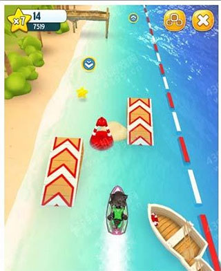 其实这款游戏与传统的敏捷游戏不同,《汤姆猫的摩托艇》中是没有关卡的,也就是说在赛道中是没有终点的。玩家要做的就是在赛道中完成每一个阶段的任务,任务完成后就会立即进入下一个阶段任务。如此说来,本游戏也就没有所谓的“通关”的说法,这个有点像跑酷游戏中的无尽模式的玩法。