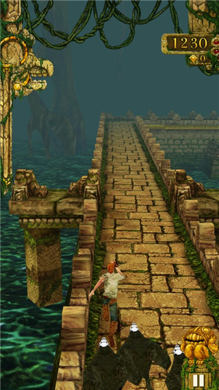 神庙逃亡1单机版开创了3D无尽跑酷游戏先河,玩家扮演一位偶然发现古老神像的冒险家,从阴森的神庙中偷取宝藏后,被一群邪恶的恶魔守卫追逐,从而展开一场在蜿蜒险峻道路上永不停歇的亡命奔跑。