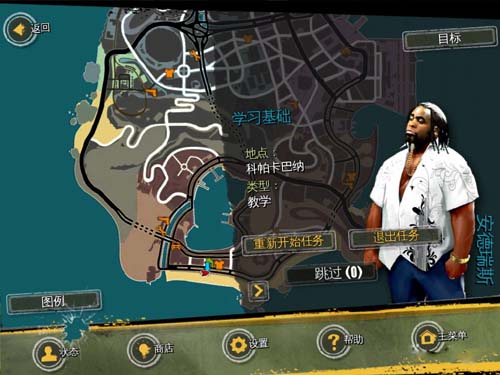 任务是让玩家熟悉人物的操作以及汽车的操作方法,还有要玩家熟悉系统的一些操作步骤。