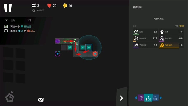 2. 在地图区域部署基础塔,借助塔的攻击能力来抵挡敌人的入侵。
