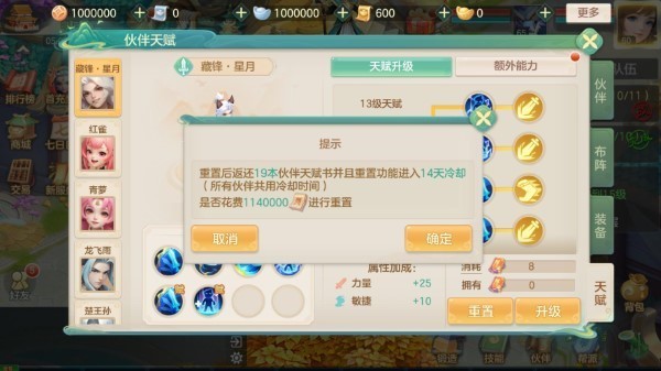天赋养成资源可回收,投入少浪费。伙伴天赋升级消耗的专属天赋书,可通过重置功能按比例返还。也可通过伙伴历练玩法,赢取天赋书与伙伴专用金;挑战藏经阁,根据敌方机制调整伙伴阵法与技能,还可赢取高额奖励。养成成本减少浪费,阵容实验大胆无忧。
