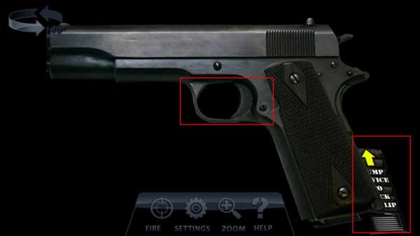 4、如果想要体验怎么玩枪,第一步就是打开保险栓,将它开启。