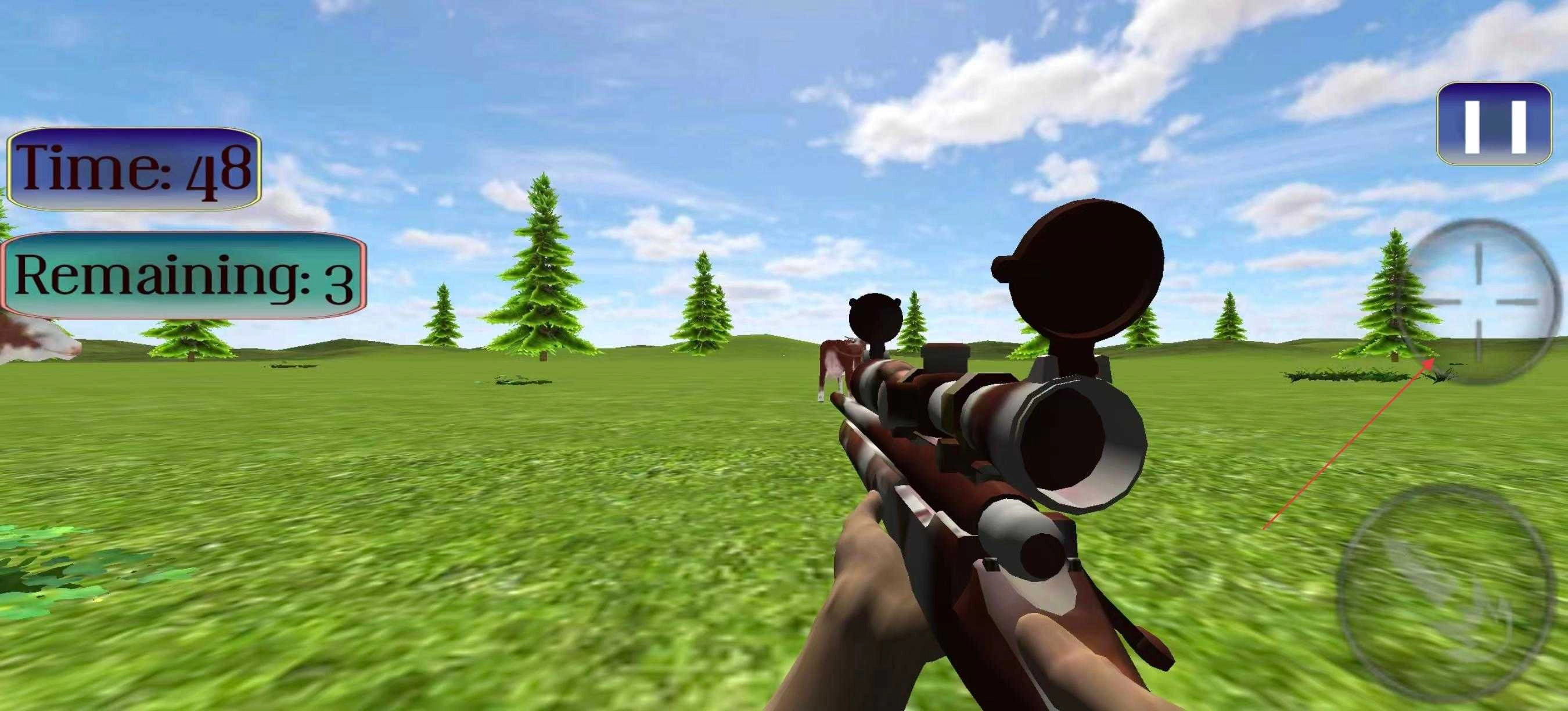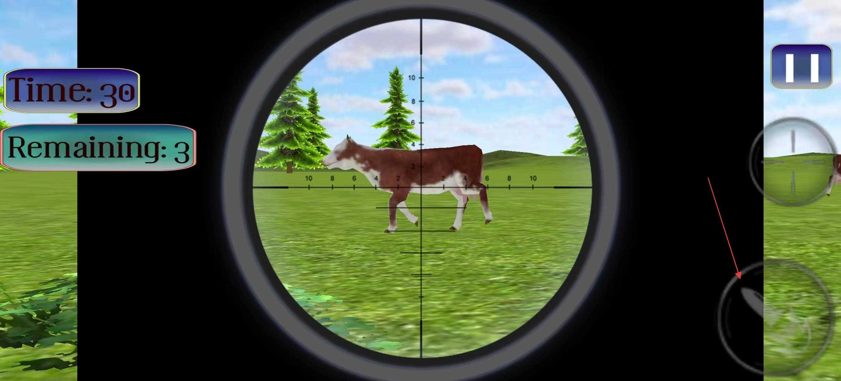 3、踏入游戏场景,你会瞧见剩余时间以及剩余目标数量的提示。此时,你手持狙击枪,借助右侧的瞄准按钮来调节瞄准方向,进而寻觅目标。