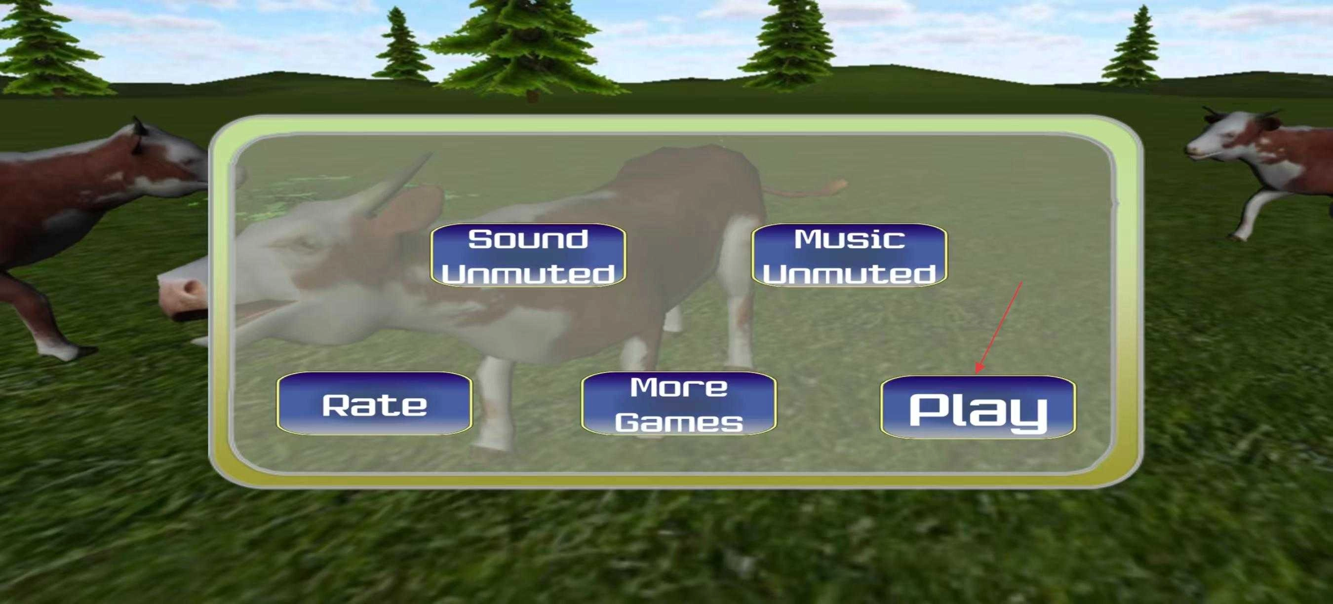 1. 开启丛林牛狩猎,进入主界面后,你会看到声音、音乐等设置选项,以及评分、更多游戏等按钮,点击开始按钮即可进入游戏。