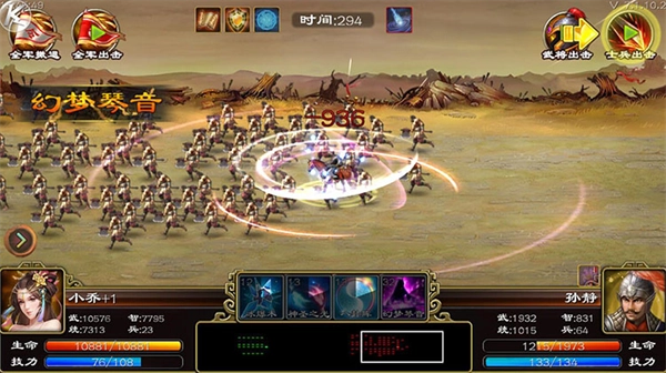 在战斗开始之前,玩家可提前借助界面中的武将,为自己麾下的名将挑选最为适配的机动兵种。进入战斗后,优先选用能够克制敌军的兵种;若不存在此类兵种,则选择与敌军相互不克制的兵种参战。兵种之间存在简单的相克关系:长枪兵克制朴刀兵,朴刀兵克制弓箭兵,而弓箭兵克制长枪兵。