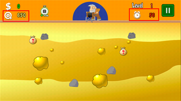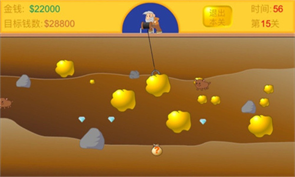 2、在规定的时间内,抓住相应的金矿获得游戏目标分数