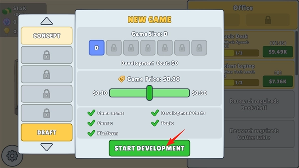 4、接下来设定游戏价格,点击屏幕下方的“START DEVELOPMENT”,着手进行开发。