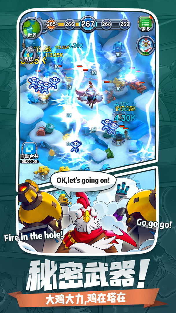 2.强化炮塔:升星你的炮塔吧,高星级意味着战斗力的飞速增长!