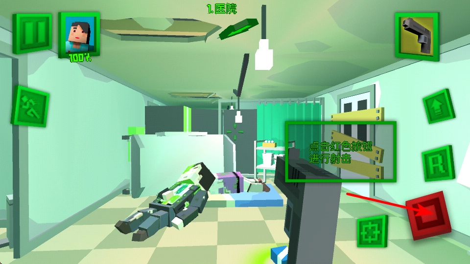 2. 进行移动动作,轻点移动按钮,控制角色于医院场景内移动,对不同区域展开探索,寻觅资源或者躲避敌人。