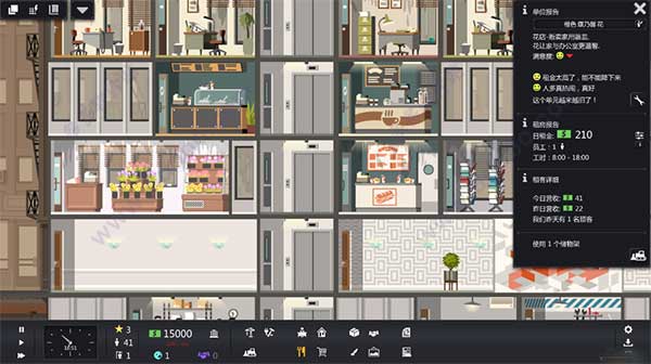大厦管理者汉化版是一款模拟经营类游戏,玩家将扮演一名大厦的物业经理,负责从建设、租赁到维护的全方位管理工作。将一栋空荡荡的建筑,发展成为一座设施完善、租户满意、利润丰厚的摩天大楼。