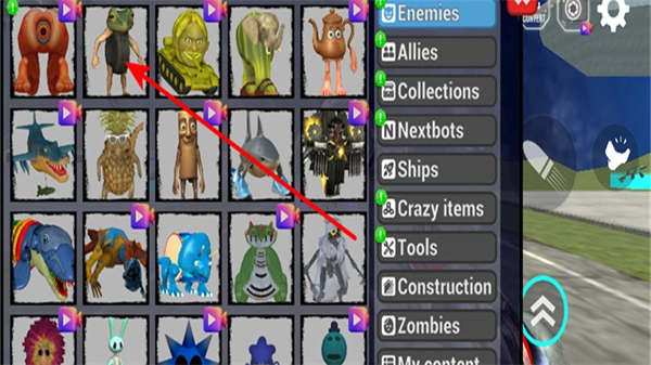 2、于角色选择界面挑选敌方角色,选中青蛙外形的敌方角色,添加至对战场景,以此丰富对战元素。