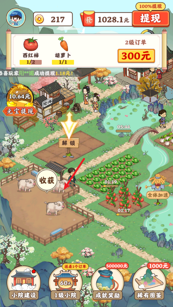 3、作物种下后需要一段时间成熟,成熟后即可点击收获。