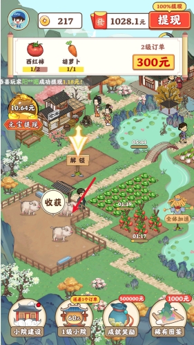 3、记得多建自己的花园,解锁升级菜田、牧场、果园等设施,提高种植养殖效率,帮助完成更多订单。