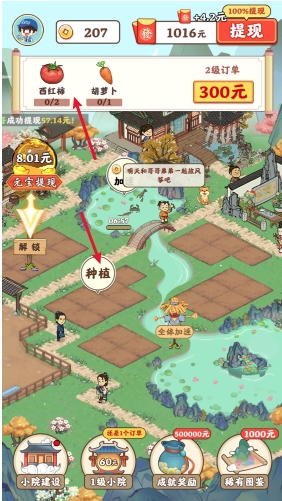 进入游戏后,点击上方查看订单详情,随后点击空地选择作物进行种植,轻松几步开启你的农场之旅。