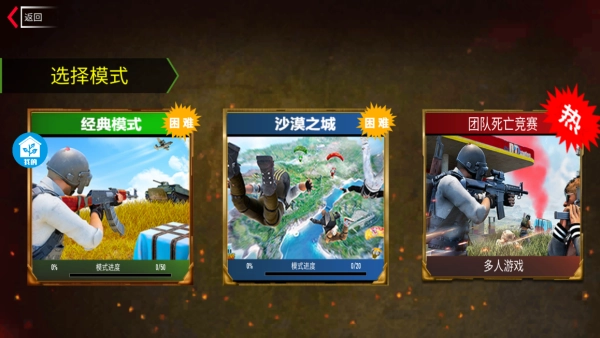 3. 可游玩的模式有经典模式、沙漠支撑模式以及团队死亡竞赛模式这三种。