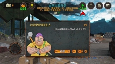 1、游戏界面的上方呈现出玩家当下的主要任务。通过自由探索并完成这些任务,玩家能够获得更多奖励。游戏的背景设定是玩家摇身一变,成为了垃圾场的新主人。尽管这个垃圾场过去被许多人嫌弃,然而它却暗藏着不少不为人知的财富。而敏锐的你,很快就察觉到了这里面的商机,接下来,你将在前任主人的指引下,深入了解垃圾场经营的技巧。