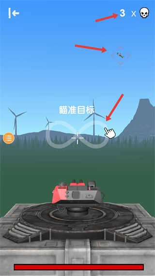 2、锁定空中出现的目标,依照提示转动炮塔方向,让瞄准框稳稳对准目标,为精确射击奠定基础,与此同时,密切关注剩余待击败的目标数量。