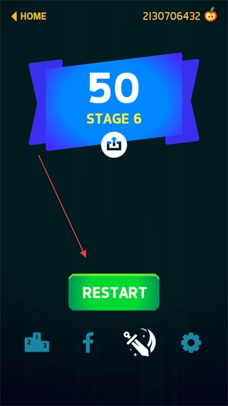 4、进入关卡结算界面,界面上显示“STAGE6”,点击“RESTART”按钮,即可重新挑战该关卡。