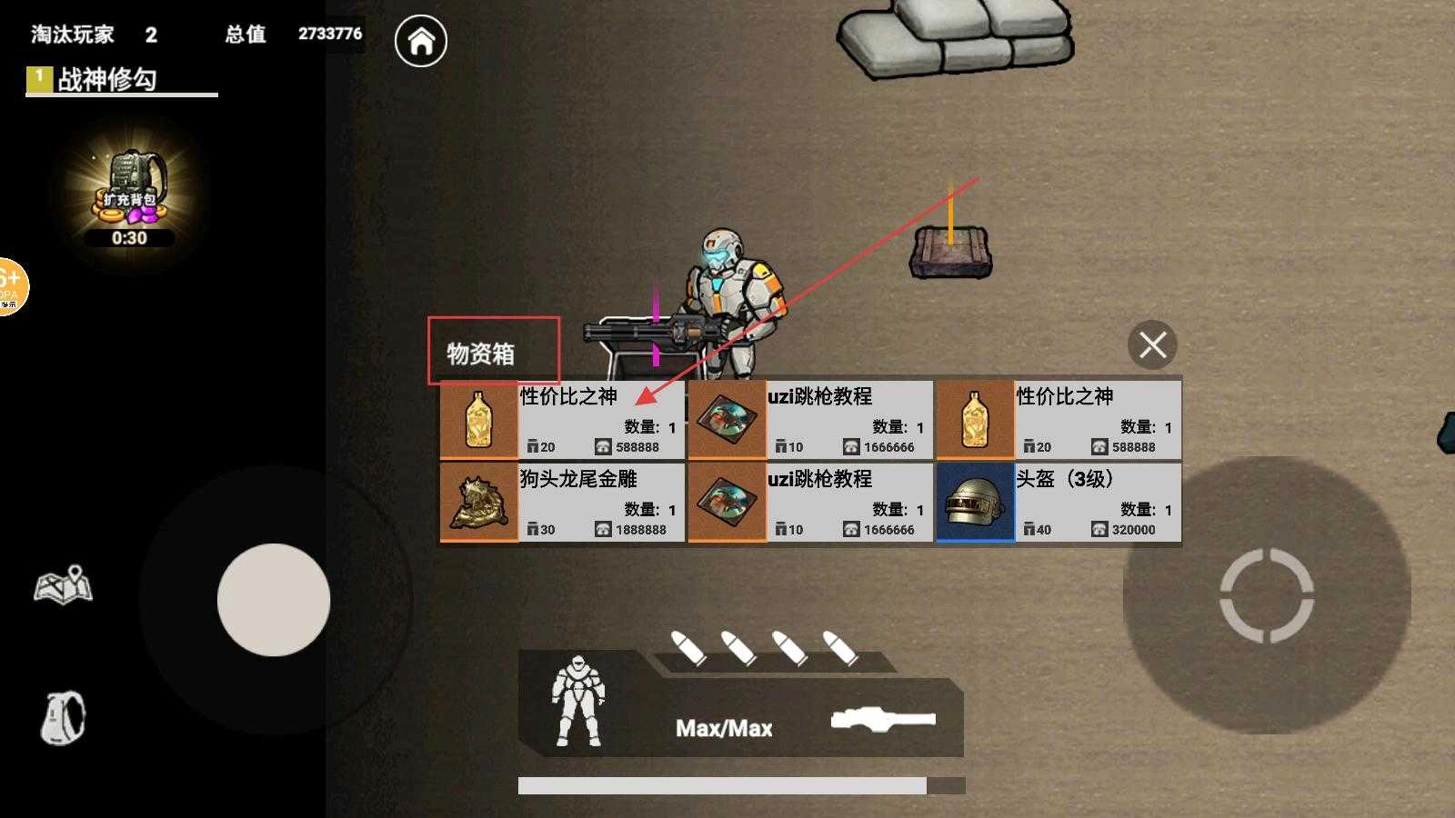 3、当打开物资箱时,物资选择界面便会出现,界面内包含各类道具。玩家能够依据自身需求,挑选恰当的物资,以此提升自身实力。