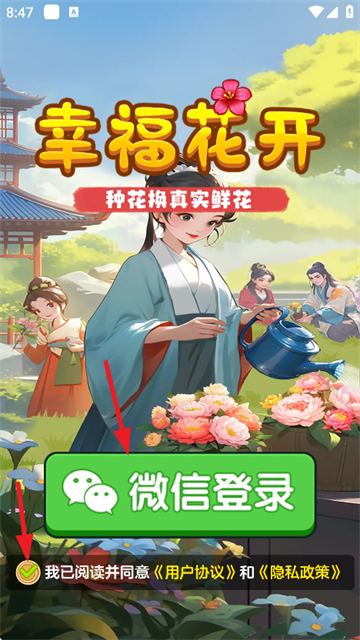3、点击微信登录,记得勾选用户协议和隐私政策