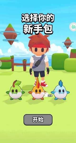 2、挑选你的新手包,里面有3个萌趣的精灵。我挑的是绿色精灵,点击“开始”,就能踏上冒险之旅啦。