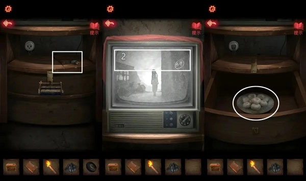 5、拿【胶布】把电视电源线修好,插上插头,开启电视。调整电视频道,依据屏幕呈现的图案以及对应的频道号,打开抽屉的锁,获取【糖瓜】。