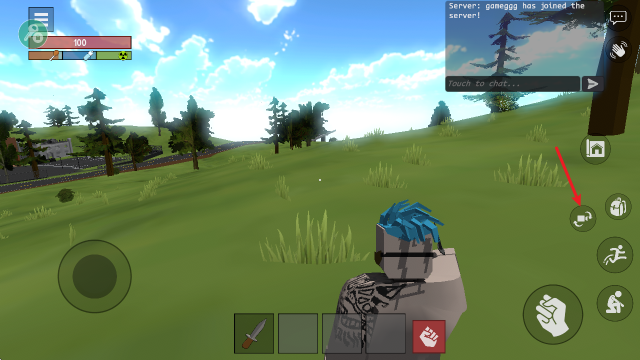 3、进入之后,和一般的沙盒游戏一样,通过摇杆控制移动,上方还有着快速奔跑的按钮。