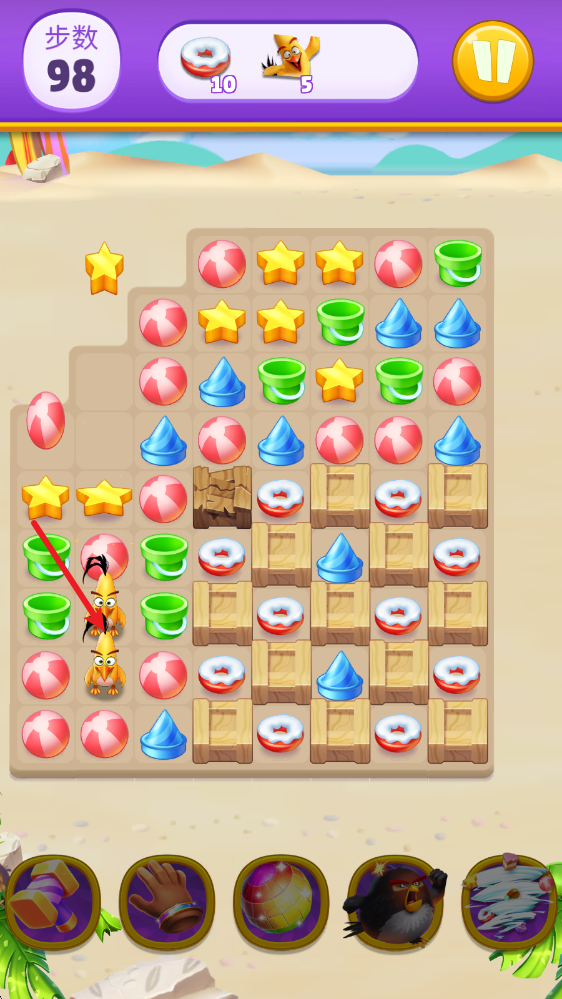 3、例如红怒鸟就能够消除一行或者一列图案。
