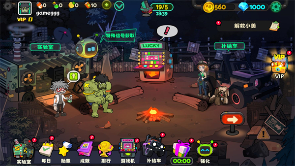 5、在主界面点击实验室可以对角色进行升级,道具等级越高可以获得的效果越强。