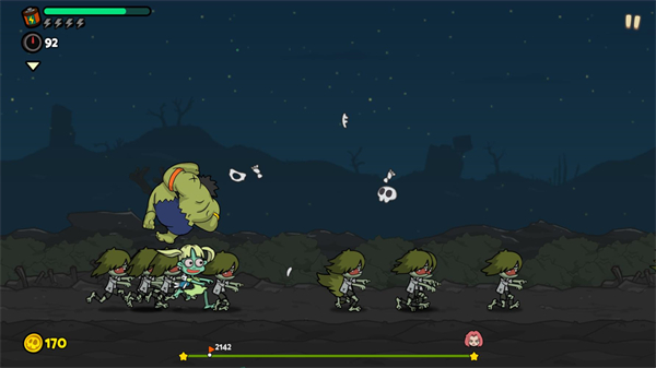 3、发射角色后点击屏幕可以让角色下砸,触碰到某些特殊僵尸会获得碎片奖励和特殊效果。