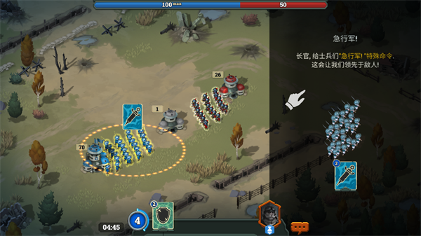5、当双方同时争夺同一地堡时,可发动“急行军”快速突袭,抢先占领并借助地堡的防御加成,抵御后续敌军的反扑。
