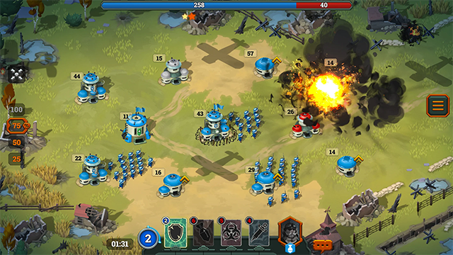 3、双击己方地堡可进行升级操作,提升防御力与部队生成速度,为后续作战提供优势。