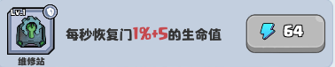 每秒自动维修房门血量1%,升级后可额外恢复一定数值的血量