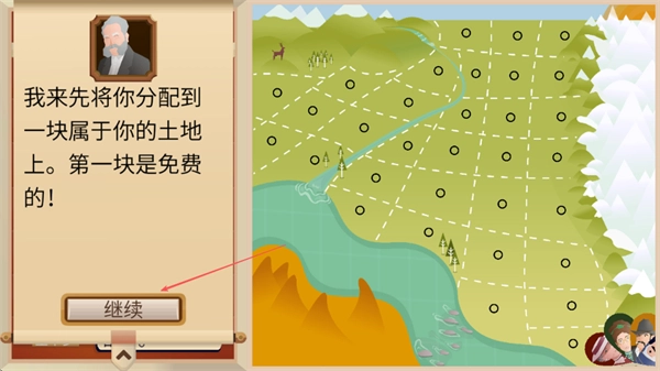 1. 一开始会得到一块免费的土地,点击“继续”即可进入游戏。