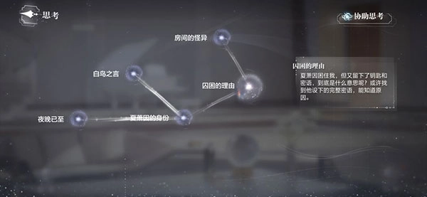 点击思考得出囚困的理由,记得要结合夏萧因的身份+房间的怪异。