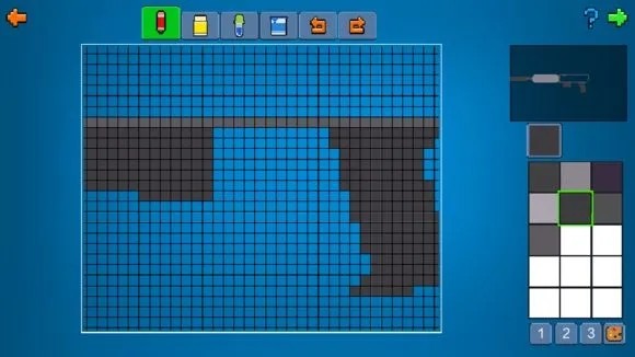 进入后,不要急着开始画,先规划好大概位置,防止空间不足导致缩水,或者枪械像素过低不美观