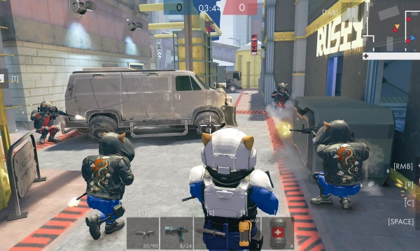 猫咪特警队是一款萌系画风的硬核射击游戏,玩家可选择猫咪形象的突击,狙击重火力或战术支援定位的角色,在卡通渲染的战场中展开对战,通过虚拟摇杆与按键操控,搭配掩体系统与武器升级,支持团队协同作战,保留射击竞技的策略深度。