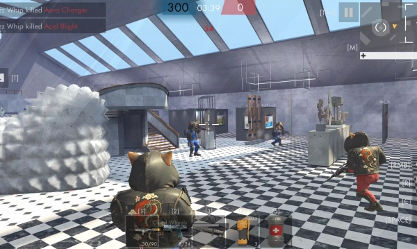 2、用虚拟摇杆控制角色移动,通过专属按键完成射击、换弹与技能释放,借助掩体开展战术对抗。