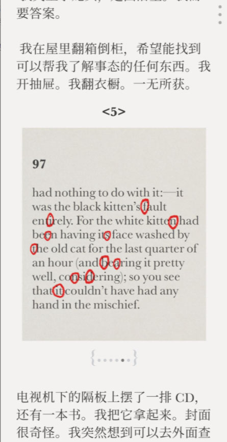 往下查看天鹅画像,直接点击就可以了,得到镜像文字,翻译过来就是:镜像从不说谎。97页