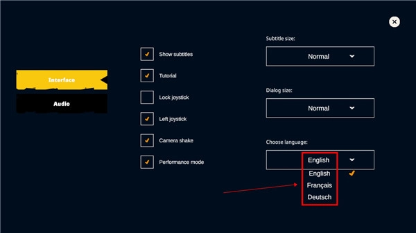 3、点击打开语言选择后,一直下滑寻找中文语言。
